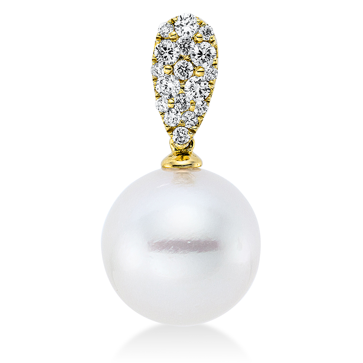 Anhänger Gelbgold 18kt 0,14 Diamantschmuck mit 11 Diamanten Südseeperle 10 mm - 3F921