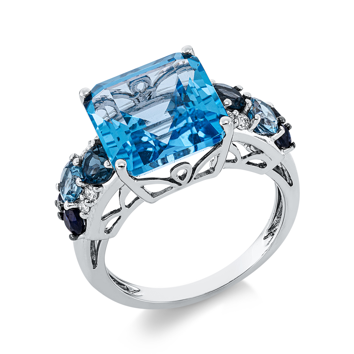 Farbstein 4er-Krappe Weißgold 18kt 0,13 Diamantringe Farbstein 9,65 ct – 1HH61