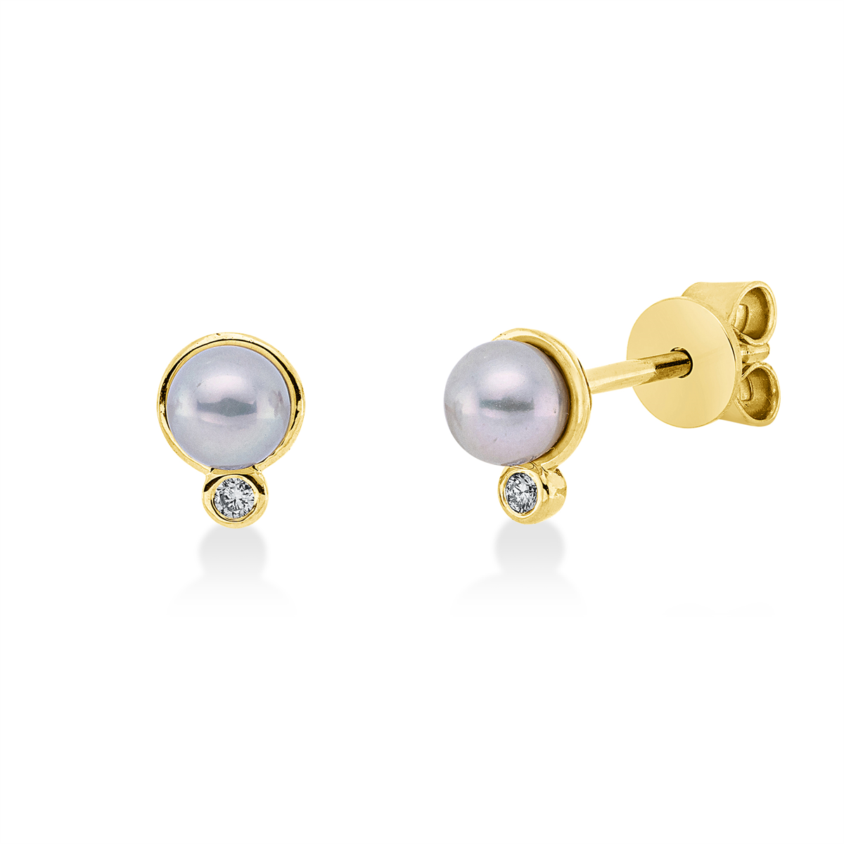 Ohrstecker Gelbgold 18kt 0,02 Diamantschmuck mit 2 Diamanten Zuchtperle 4,1 mm – 2V012