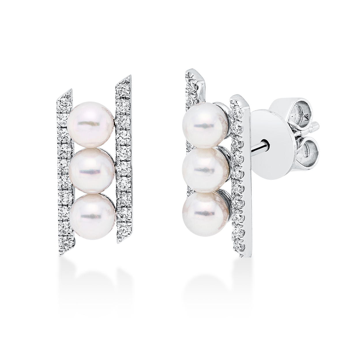 Ohrstecker Weißgold 18kt 0,20 Diamantschmuck mit 40 Diamanten Zuchtperle 3 mm – 2V302