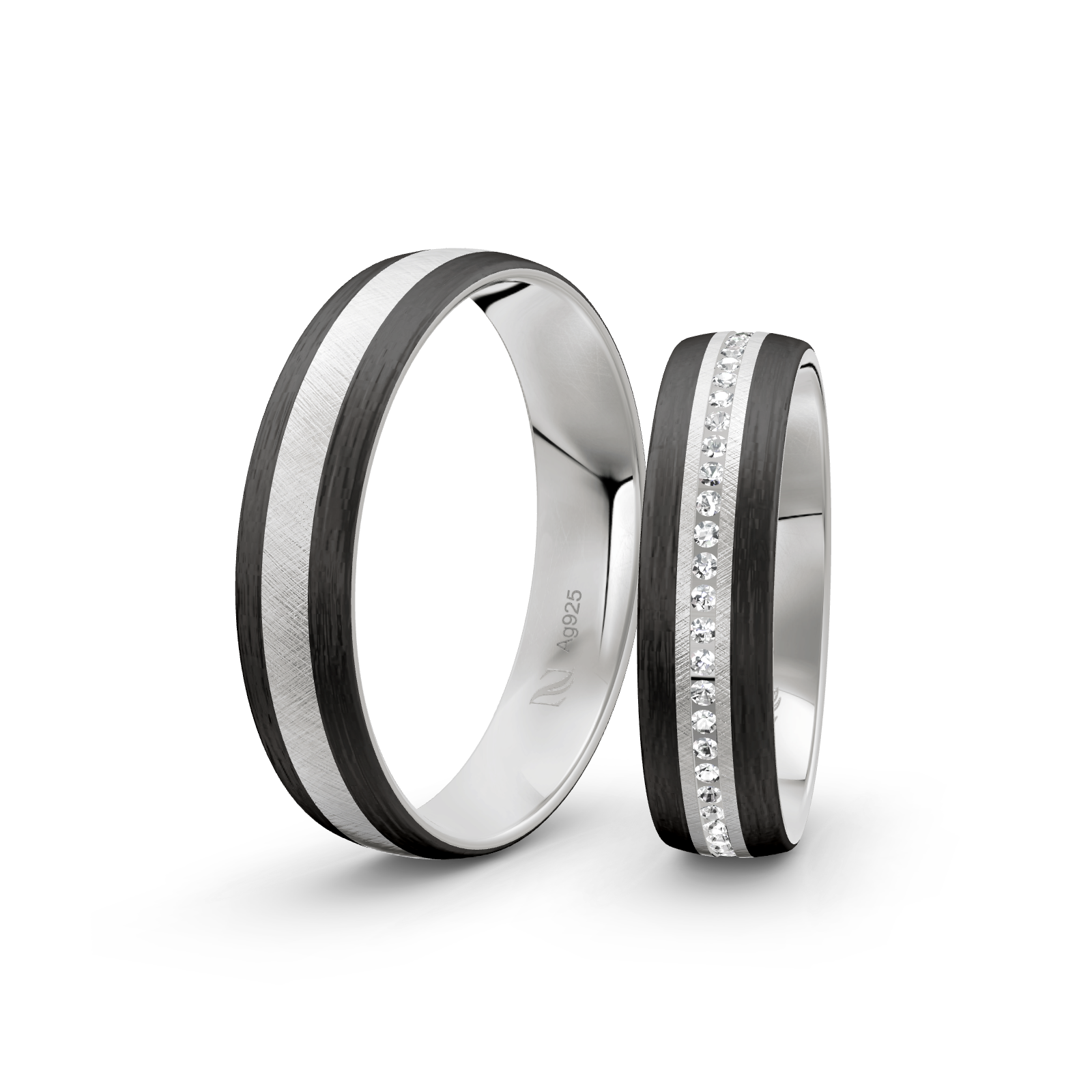 Trauringe Silber / Schwarz Rhodiniert / Rosegold plattiert / 925 Silber | Modell Zum-1004s